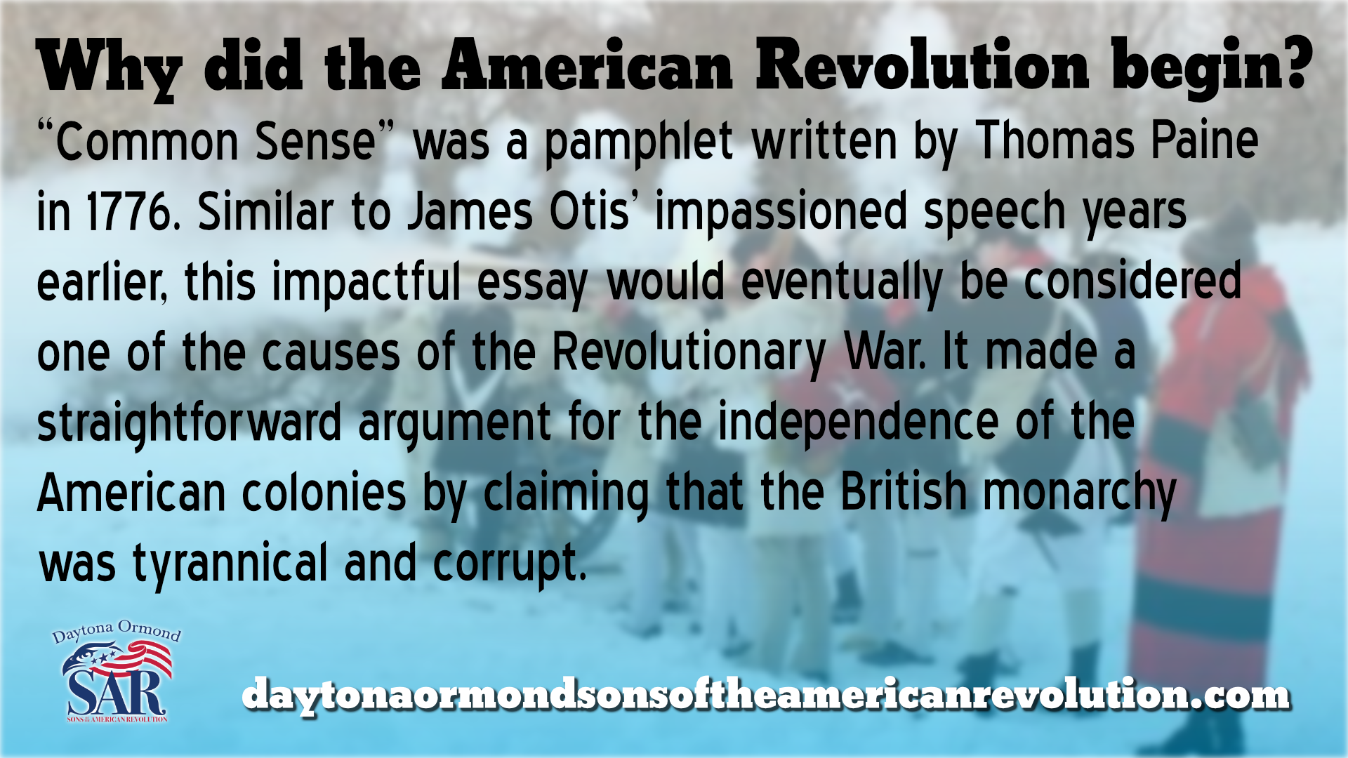 American Revolution War Begins Due To The Common Sense Pamplet explained by the Daytona Ormond Sons of the American Revolution | Your #1 source for all things American Revolution.